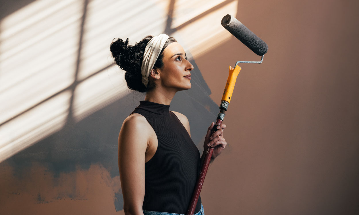 Make sure your work area is clean and clear of any furniture. Lay down plastic to cover your floors and any surfaces that you want to protect from paint spills or droplets. Use masking or decorator’s tape to protect surfaces around light switches, below cornices, and above the skirting board. You can also use tape to add any clean lines to walls.