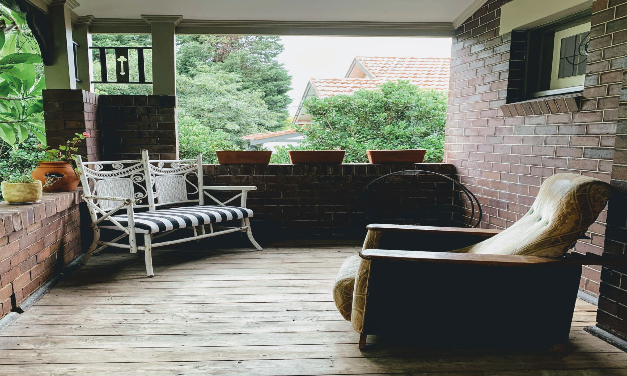 Another tip is to think about ways to draw attention to your porch is to make the area appear bigger and accentuate the fact that you’re outside. Plus, it’s always wise to have a focal point from a design perspective. The best options are to utilise ceiling fans or overhead lights to work as multi-function fixtures. They do double duty by moving hot air around and boosting illumination at dusk, early morning and at night, while also giving the eye something to be drawn to.